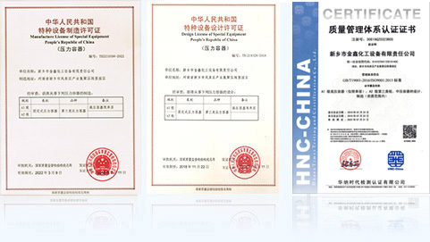 金心公司擁有國(guó)家市場(chǎng)監(jiān)督管理局頒發(fā)的A1、A2級(jí)壓力容器制造許可證和設(shè)計(jì)許可證;通過(guò)了ISO9001:2015標(biāo)準(zhǔn)的質(zhì)量管理體系認(rèn)證;